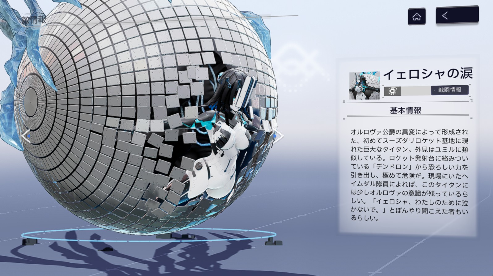 HPを一定値まで減らすと無敵状態になり、6本の小さな柱を召喚します。画面最上部に表示されている白いバーがMAXになるまでに全ての柱を破壊できなければゲームオーバーです。