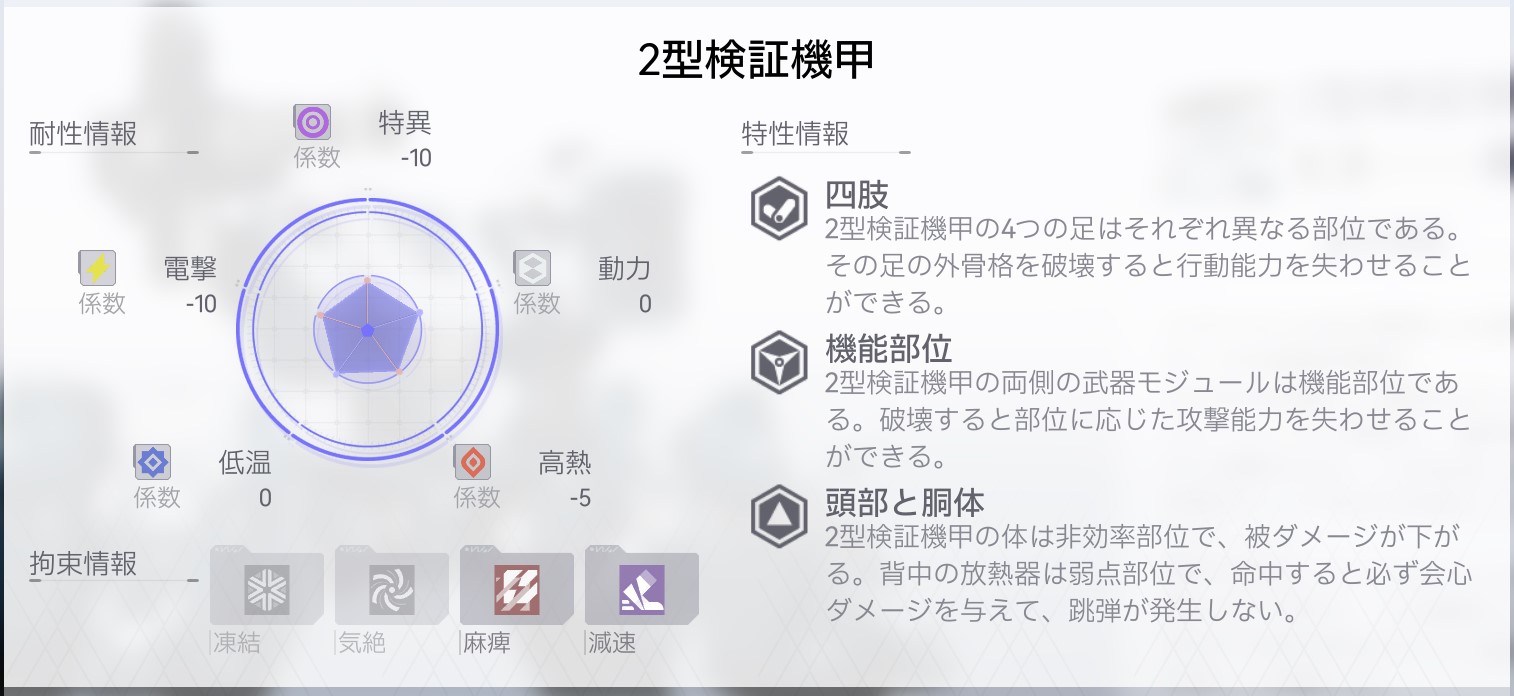 2型検証機甲のボディはダメージが通りづらい特性を持っています。