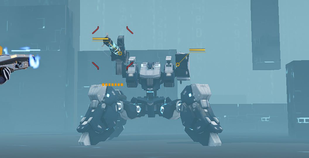 頭部の武装(2箇所)を破壊することで、強力な攻撃を封じることができます。