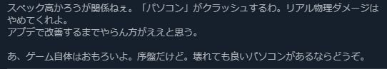 体験版をプレイした結果、8割くらいは買う心持ちになった。