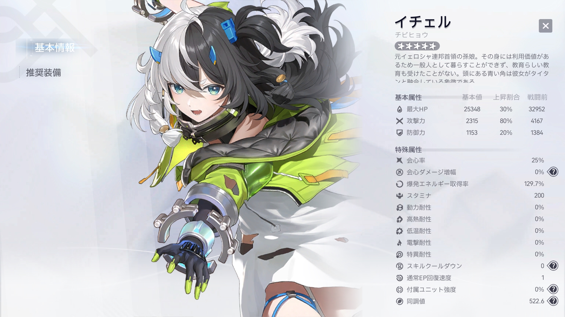 | HP回復倍率 | イチェルの攻撃力20%+105 ※敵1体に命中するごとに+5%(最大25%) |