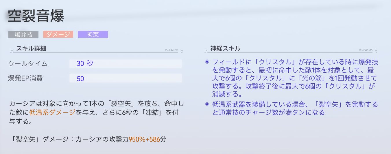 | ダメージ倍率 | カーシアの攻撃力950%+586 |