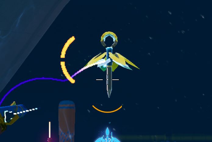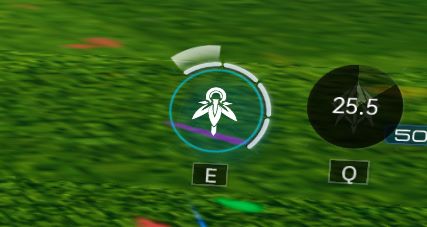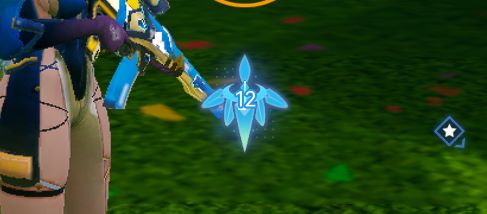 「クリスタル」は同時に12個まで存在可能で、持続時間は999秒とかなり長め。クリスタル設置数と「追風値」は画面中央付近のアイコンでも確認できます。こっちで確認する方がわかりやすい。