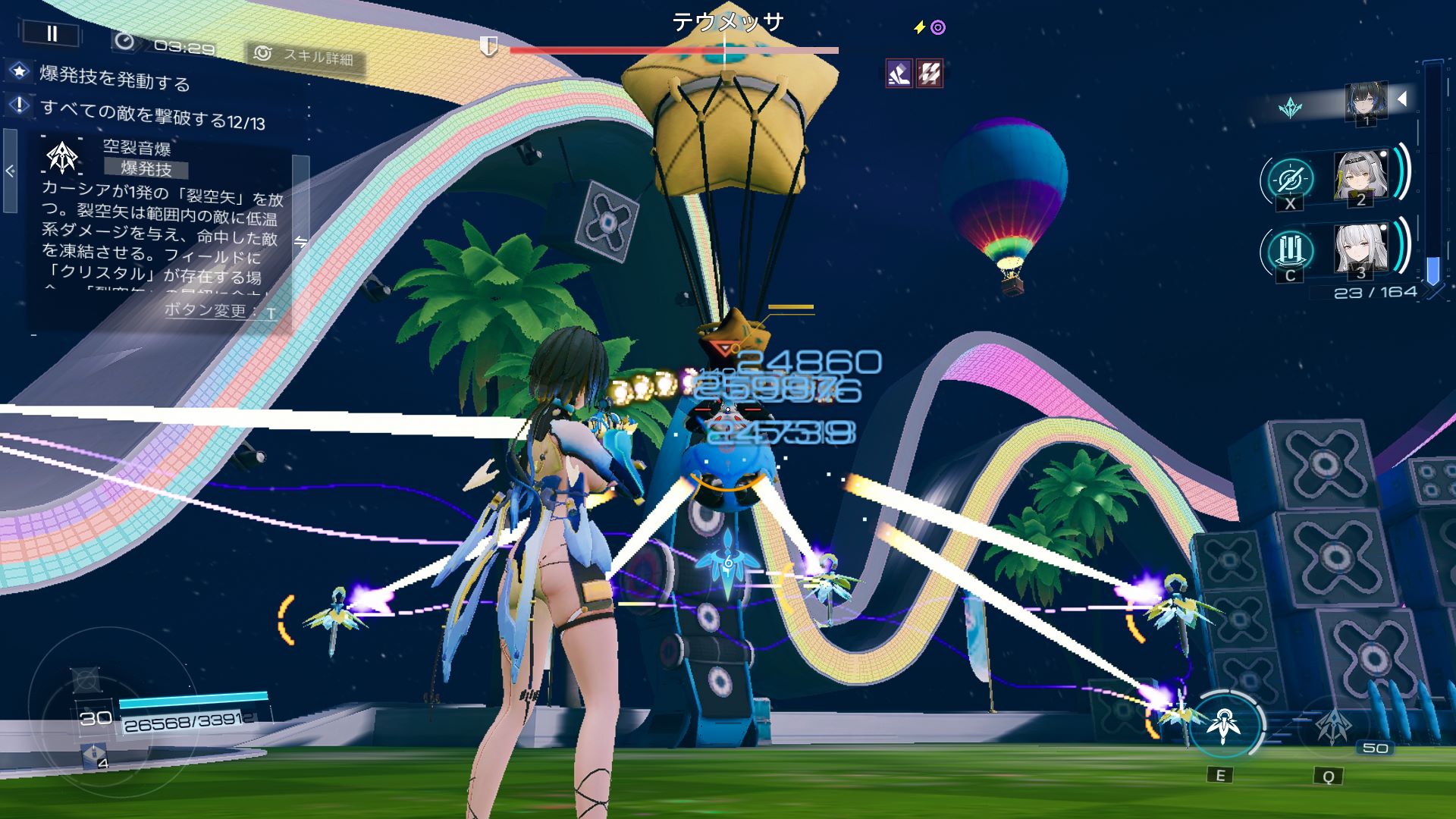 「追風値」が最大に達すると、次の射撃時に最大6個のクリスタルから「光の筋」が発射されたのち、最大3個のクリスタルが消滅します。その際、「光の筋」を発射したクリスタル1個につきカーシアの残弾数が4発回復します(最大24発)
