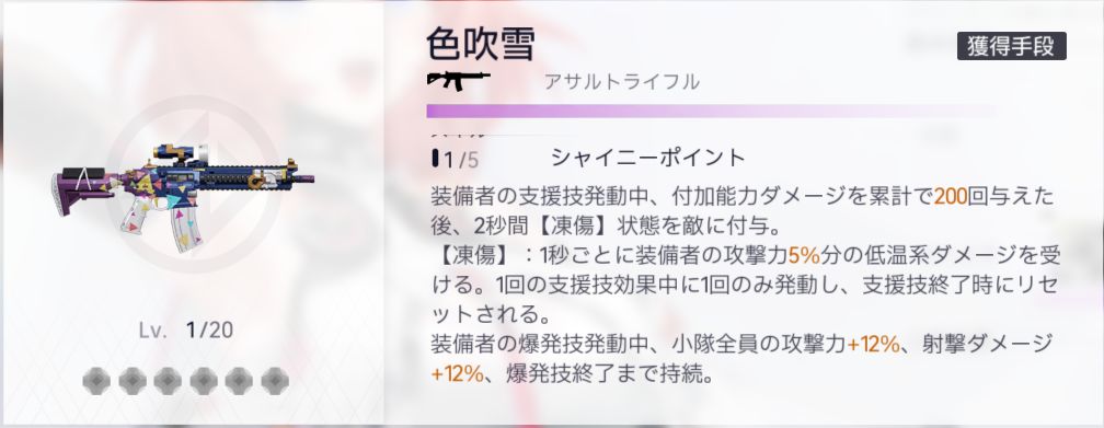 支援技の【凍傷】が100回で発動し、紫武器の【凍傷】が200回で発動する、そして爆発技は永続って考えると紫武器もなかなか悪くないかもしれない…