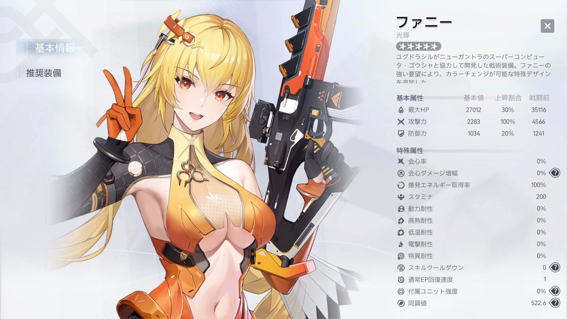 | 追加攻撃力バフ | ファニーの攻撃力22% |