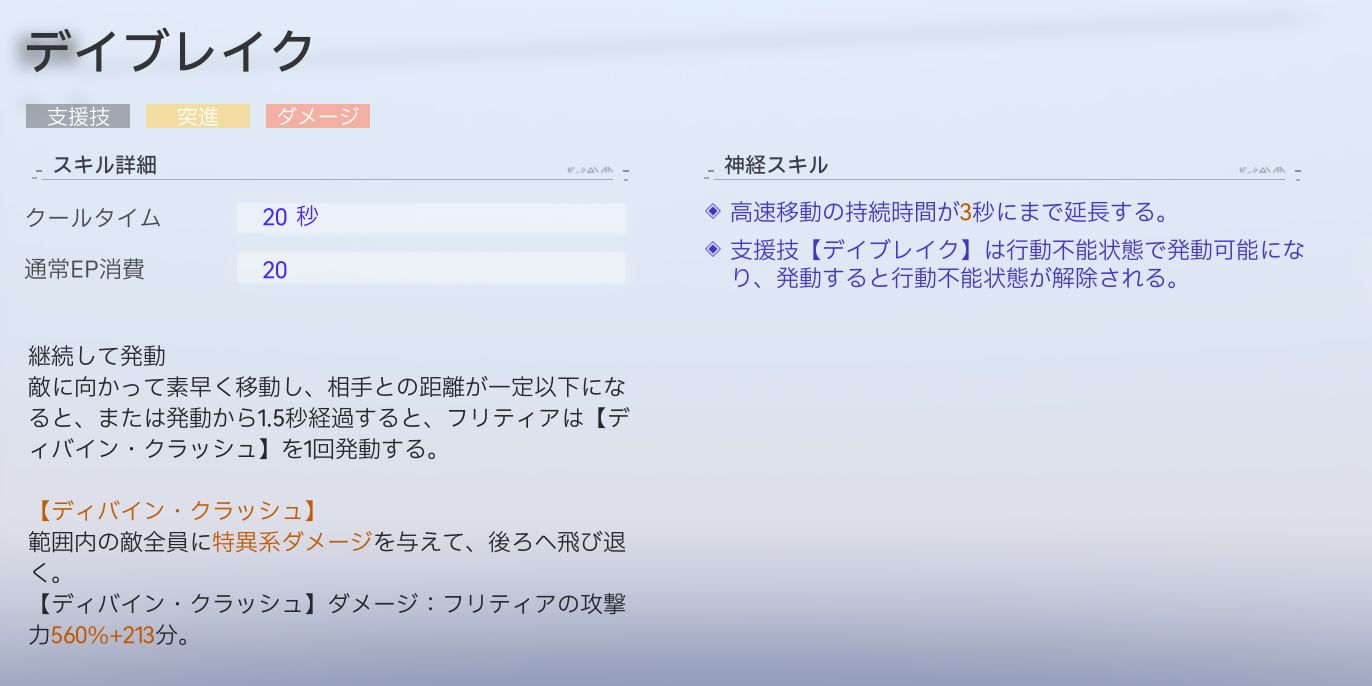 | ダメージ倍率 | フリティアの攻撃力560%+213 |