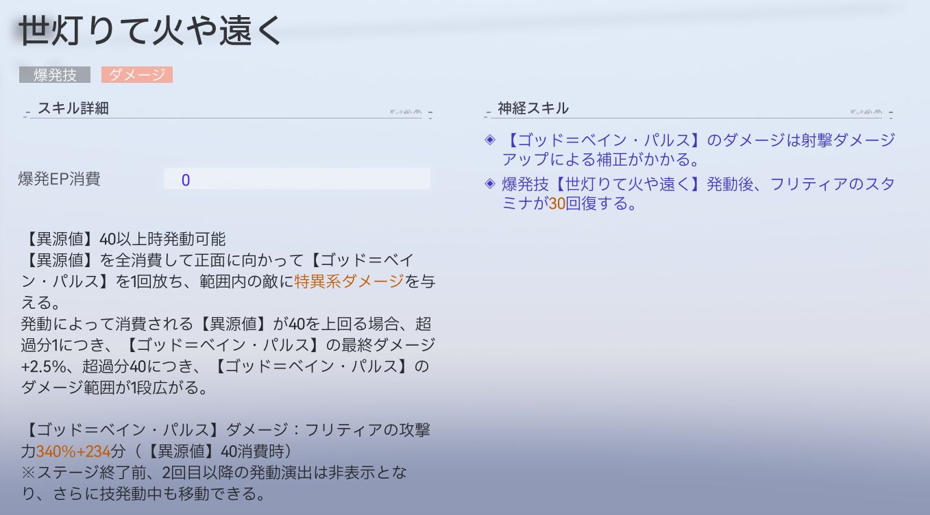 | ダメージ倍率 | フリティアの攻撃力340%+234 |