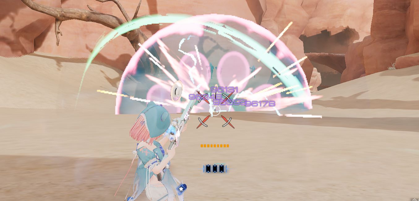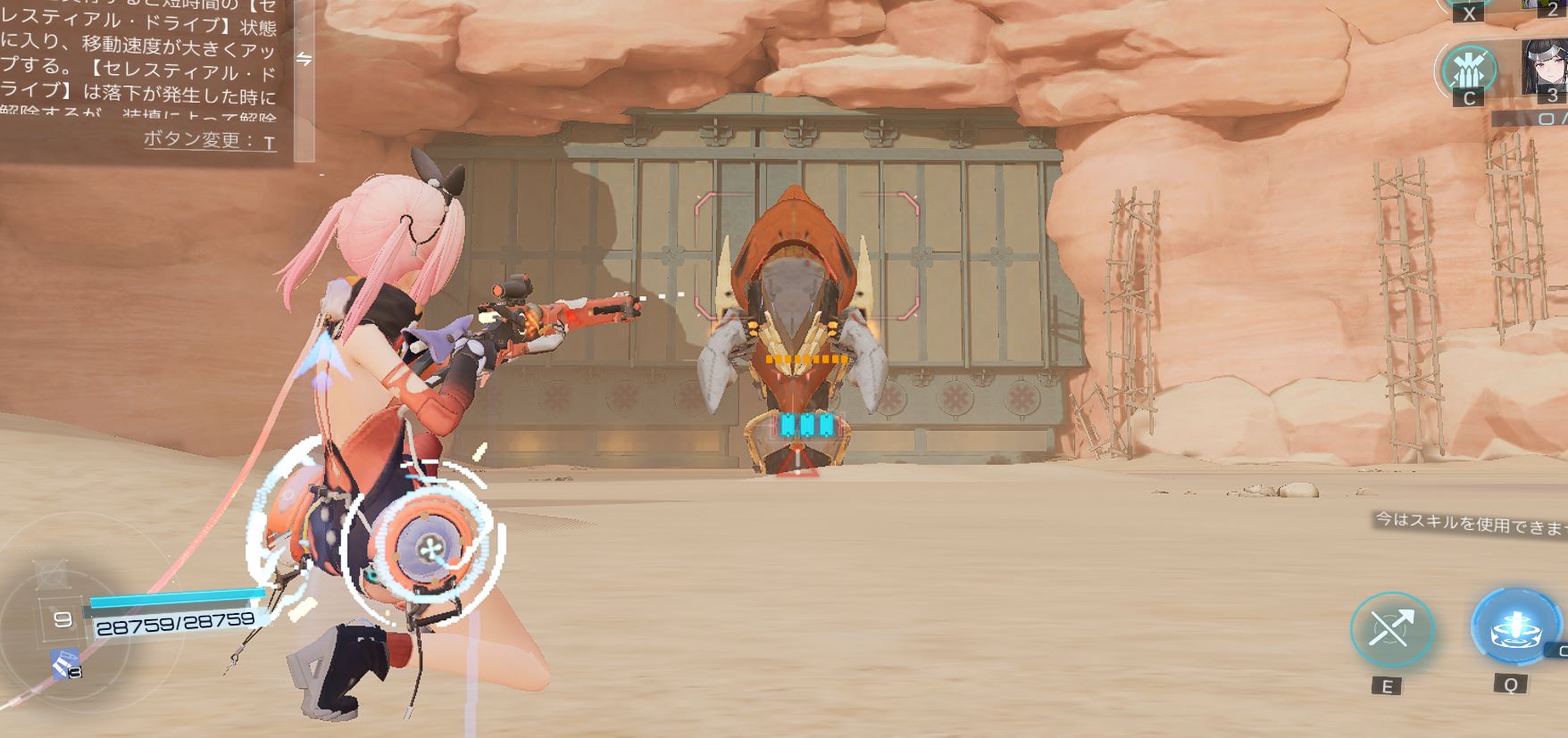 腰撃ちする時は照準付近の敵を自動で狙う必中攻撃を行い、スコープを覗くとフリーエイムになる便利仕様。カーシア-ブルーフラッシュの通常技をそのままスナイパー向けに調整したって感じのスキルになっています。