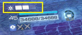 この【ファングマーカー】に射撃を命中させるか、範囲内にいる敵にダメージを与えるたびに下の【武装ゲージ】がチャージされ、最大になると自動で攻撃を行います。