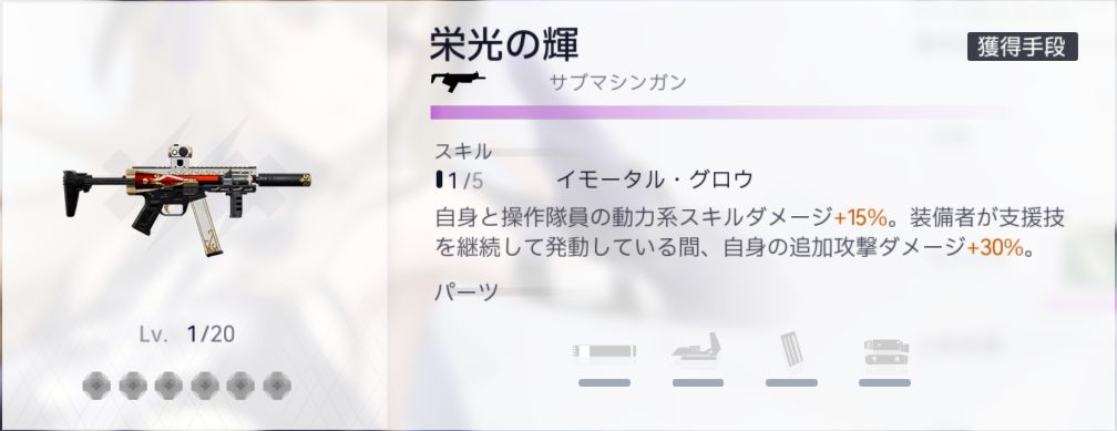 動力系武器を装備中、小隊全員が【激痛】状態の敵に与えるダメージ+15%(同調値100につき、追加で+2%)
