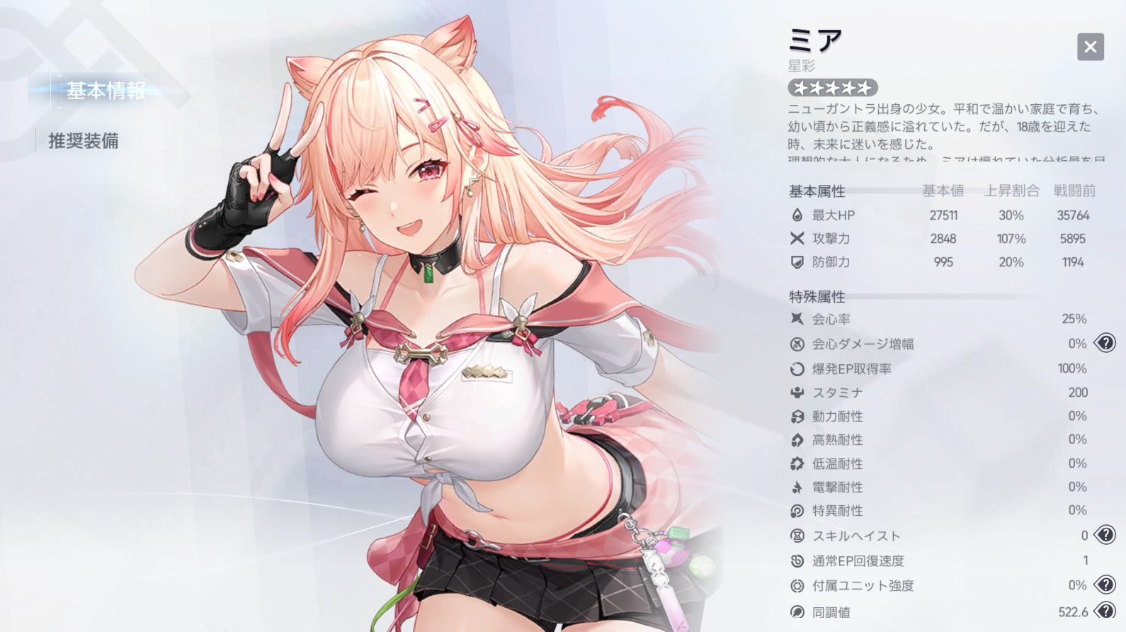 お試しステージのミア-星彩は「攻撃力」「同調値」「電撃系ダメージ」