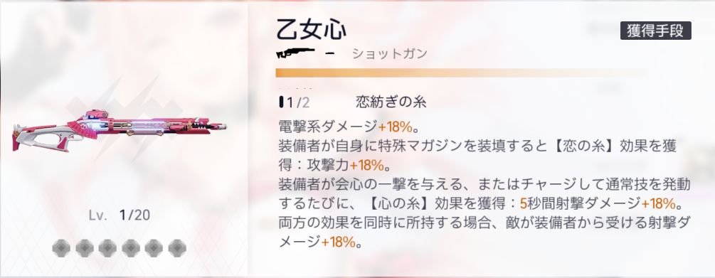 装備者が自身に特殊マガジンを装填すると【恋の糸】効果を獲得:攻撃力+30%