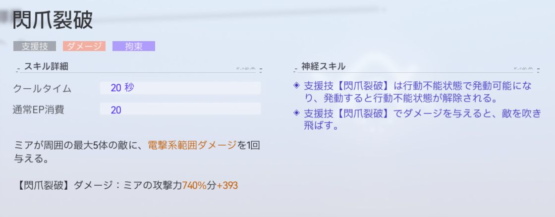| ダメージ倍率 | ミアの攻撃力740%+393 |