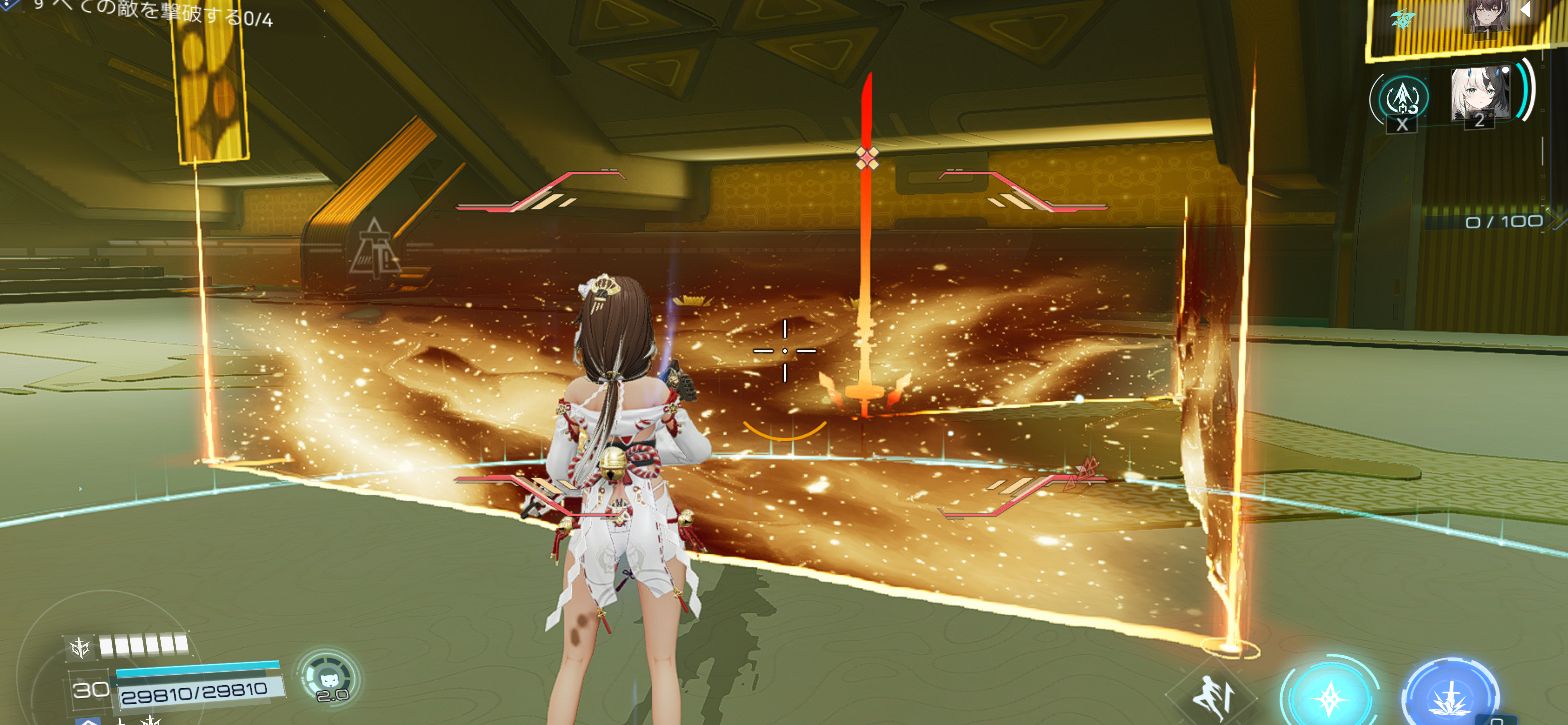 つまり、「6回囲って通常技を長押しする」というのが一連の流れになります。目が回る。敵に接近する関係で被弾しやすいですが、アウクトゥス1の効果で回復します。