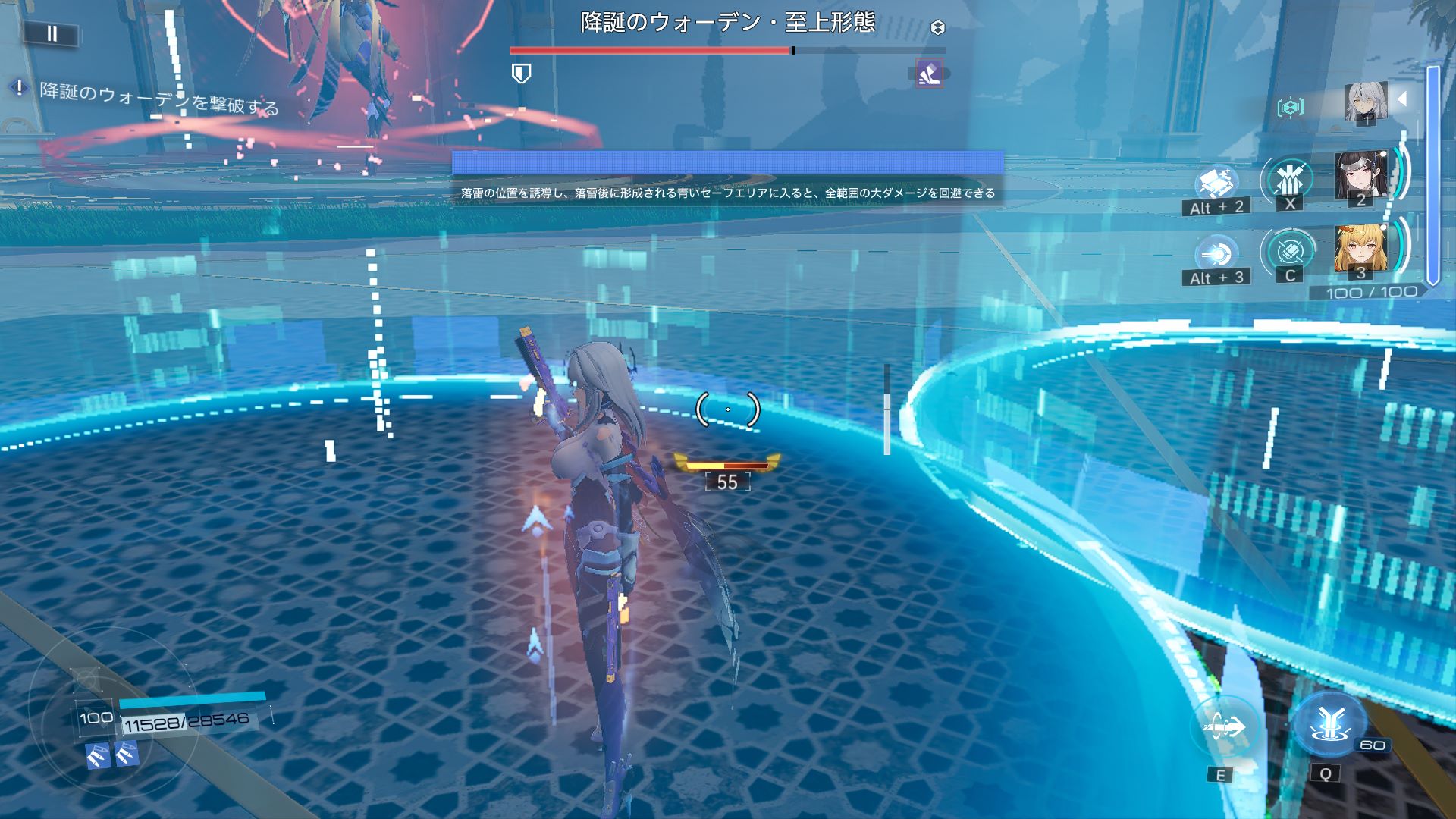 その地点にセーフティゾーンが形成され、直後に繰り出されるボスの即死攻撃(?)を回避することができます。落雷に当たってしまうとセーフティゾーンが形成されません。