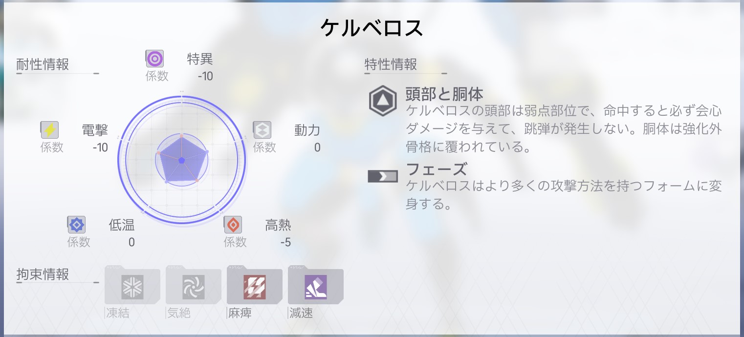 ケルベロスの頭部は跳弾が発生しませんが、胴体部分は強化外骨格で覆われているせいで跳弾がかなり発生します。射撃アタッカーを使うなら意識しておきたい。