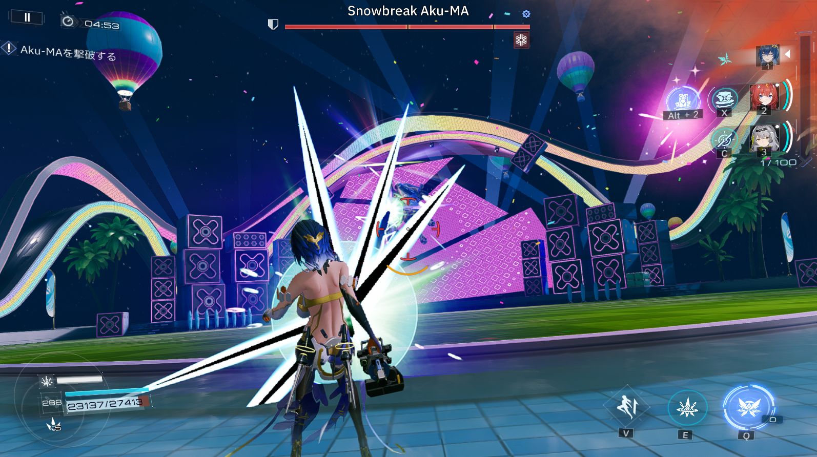 Aku-MAがステージ上に移動した後、正面に向かって大きなエネルギー弾を射出します。