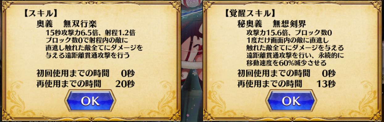 | 自己倍率 | [攻撃力]12.0(15.6)倍 [射程]画面内 |