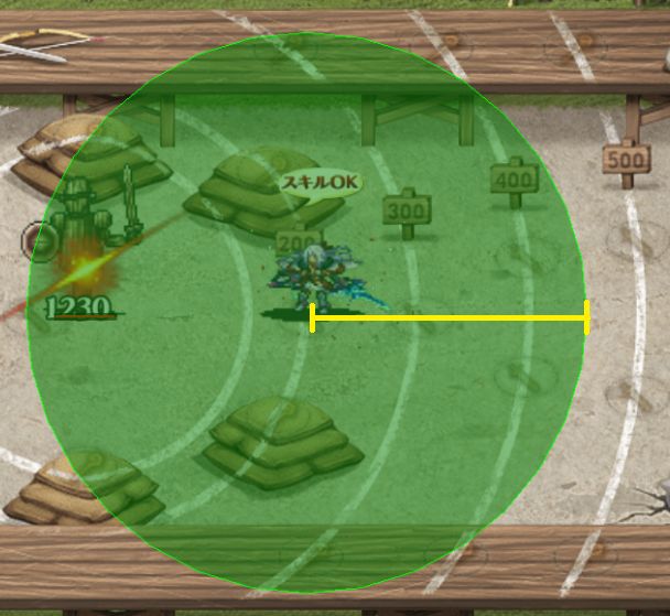 射程300、剣波が届く距離は450程度まで。