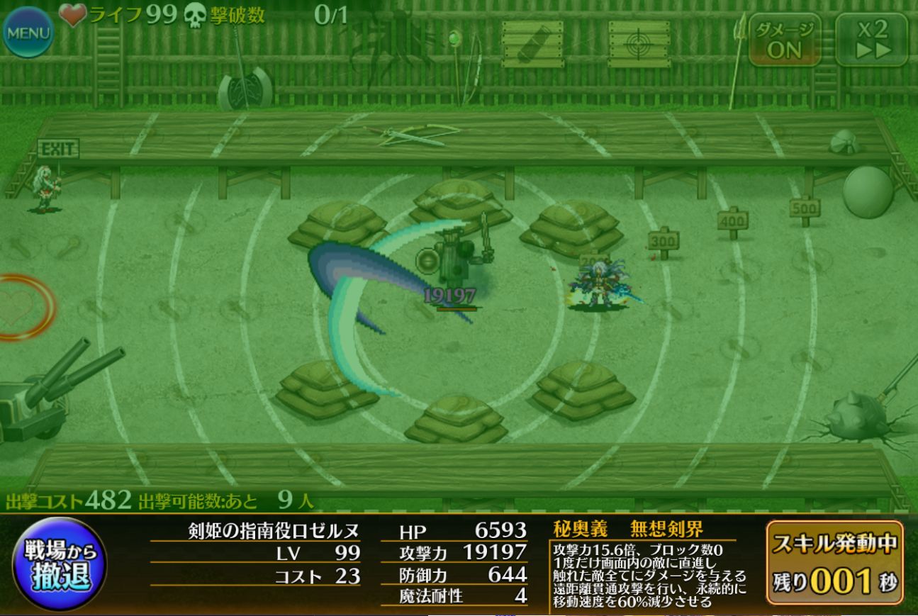 ブロック数0になるし、鈍足が付いているから一つのルートを単独で守りきれるくらいの性能をしている。CTが長めだから隙はあるけど…って感じですね。