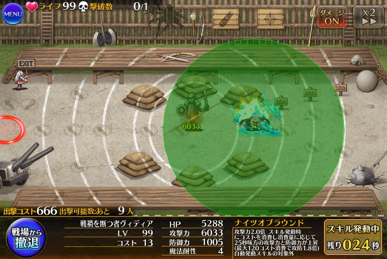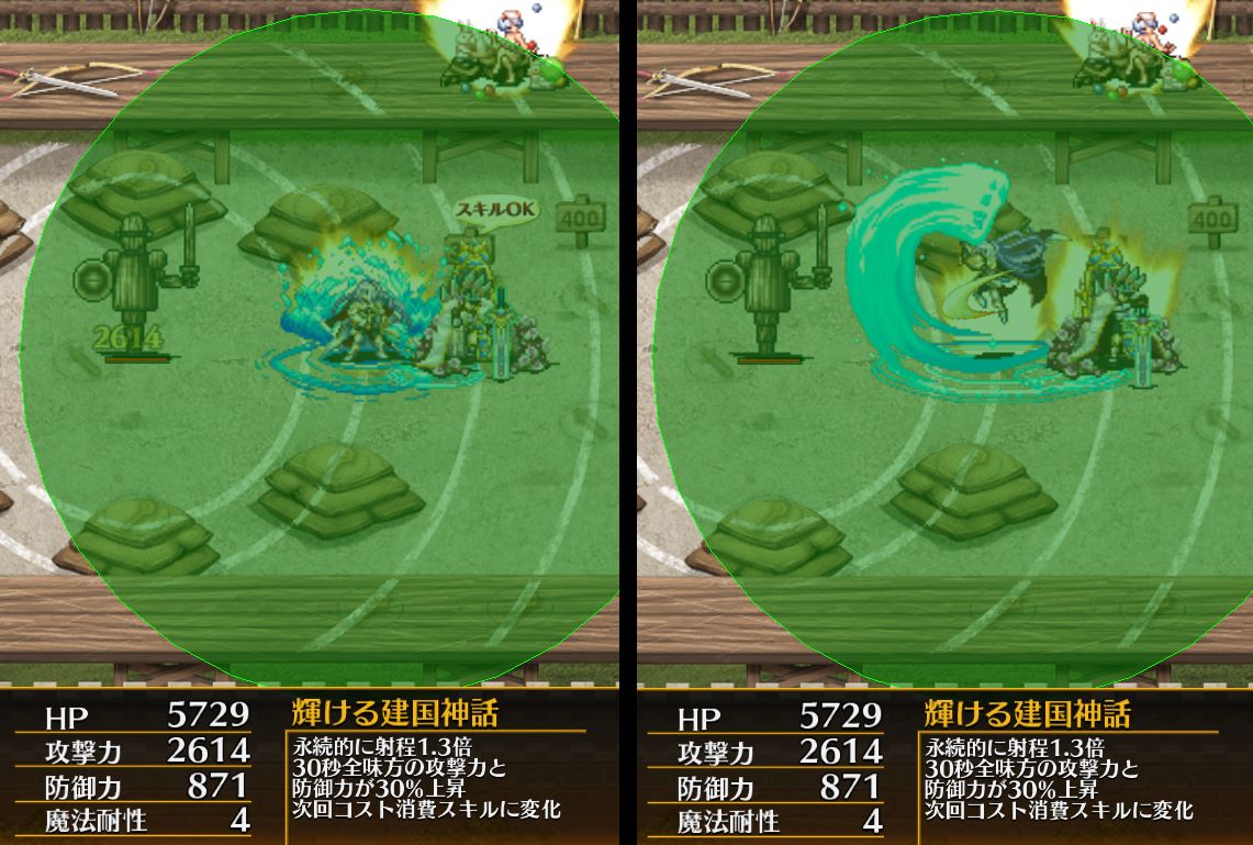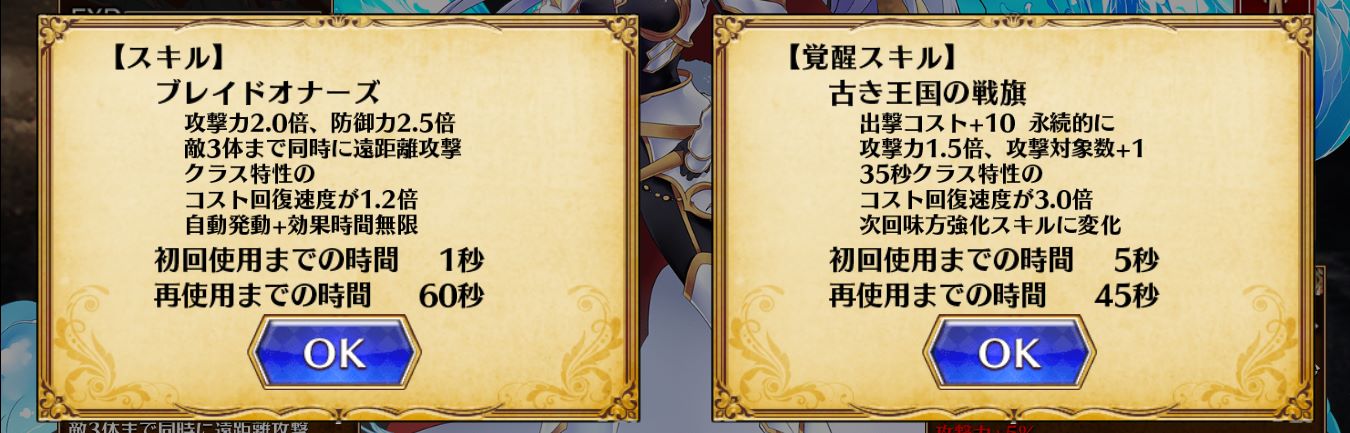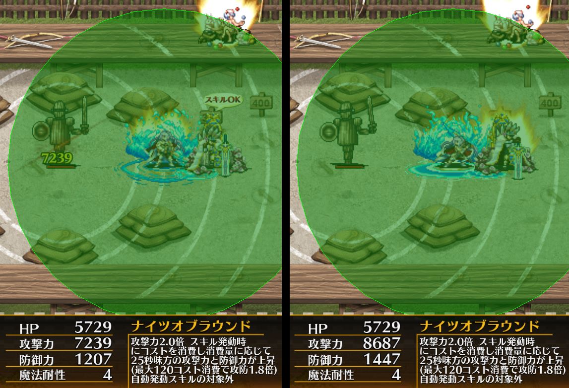 | 効果 | スキル発動時に最大120コストを消費 消費量に応じて味方の攻撃力と防御力が最大1.8倍上昇 自動発動スキルの対象外 |