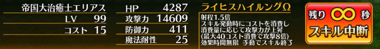 手動でスキルを終了できるので、半端なコストで発動してしまっても掛け直すことができます。安心安心。