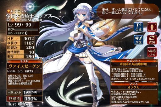 この範囲内の味方に永続でマルチヒールとダメージ軽減30%を付与できるのが偉ーい!ちゃんと攻撃倍率が付いているおかげで回復量も文句なし。ただ、帝国ユニットを複数展開しないと単体ヒールになるってところがネック。