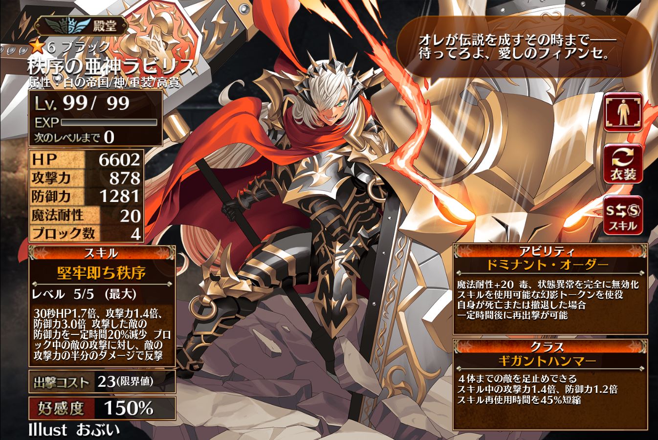 獅子女の覇者ホルテウス(白)配置されている味方のHPを永続的に+10%(※別枠バフ