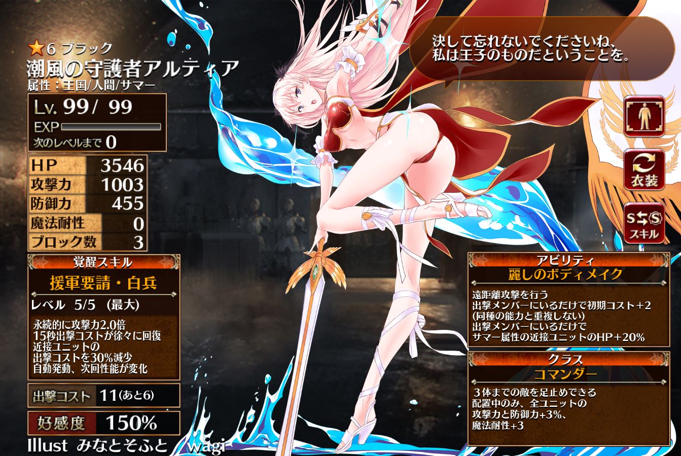 潮風の守護者アルティアサマー属性の近接ユニットのHP+20%