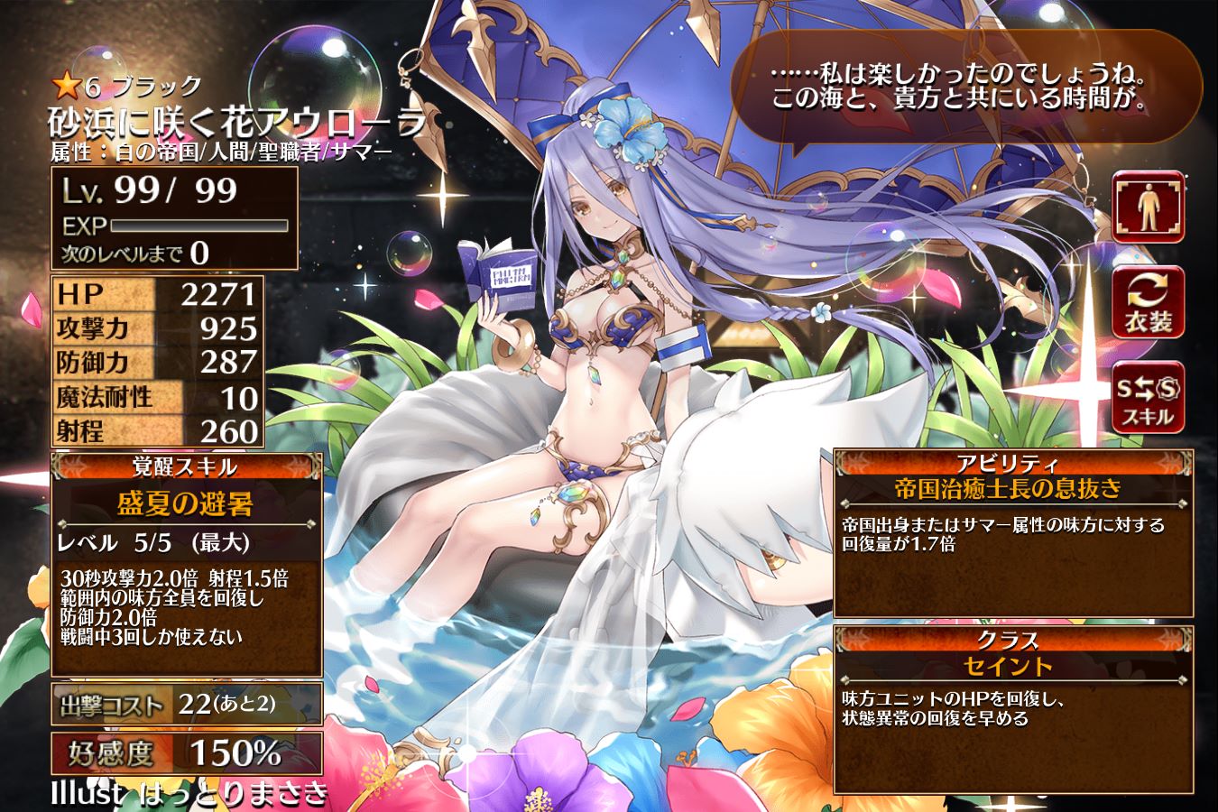 浜辺の武術女官マリカ帝国、サマー属性の遠距離ユニットの射程+10