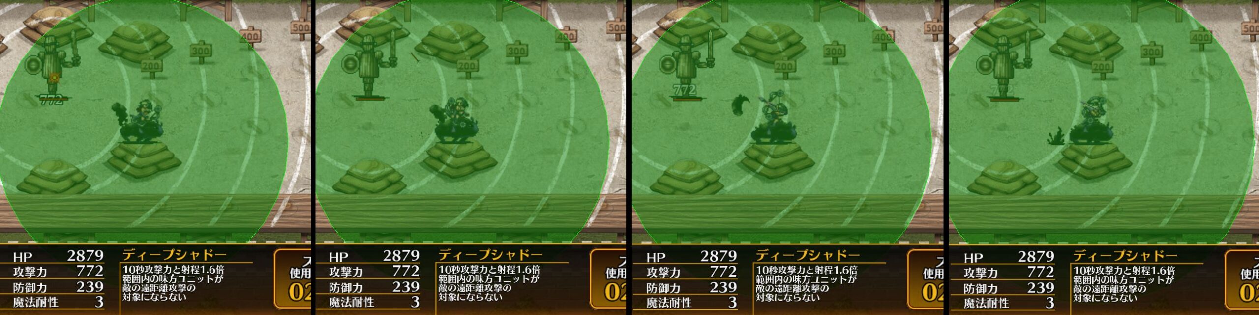 • 味方ユニットを対象とする射程バフは、効果が一番大きいものだけ適用される
