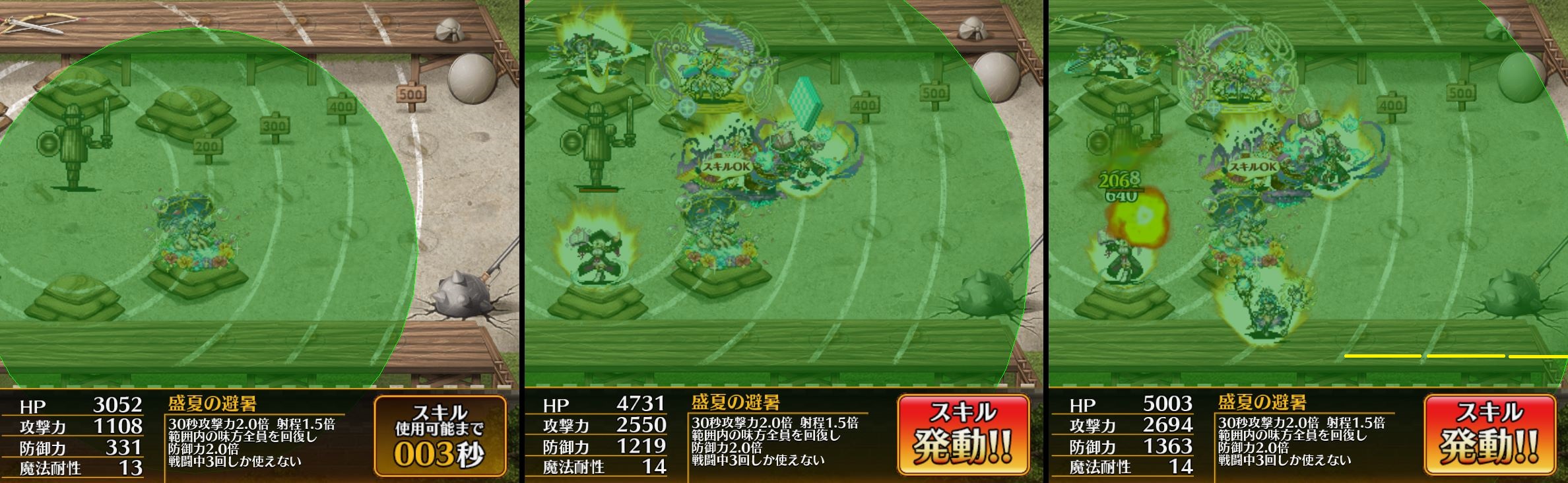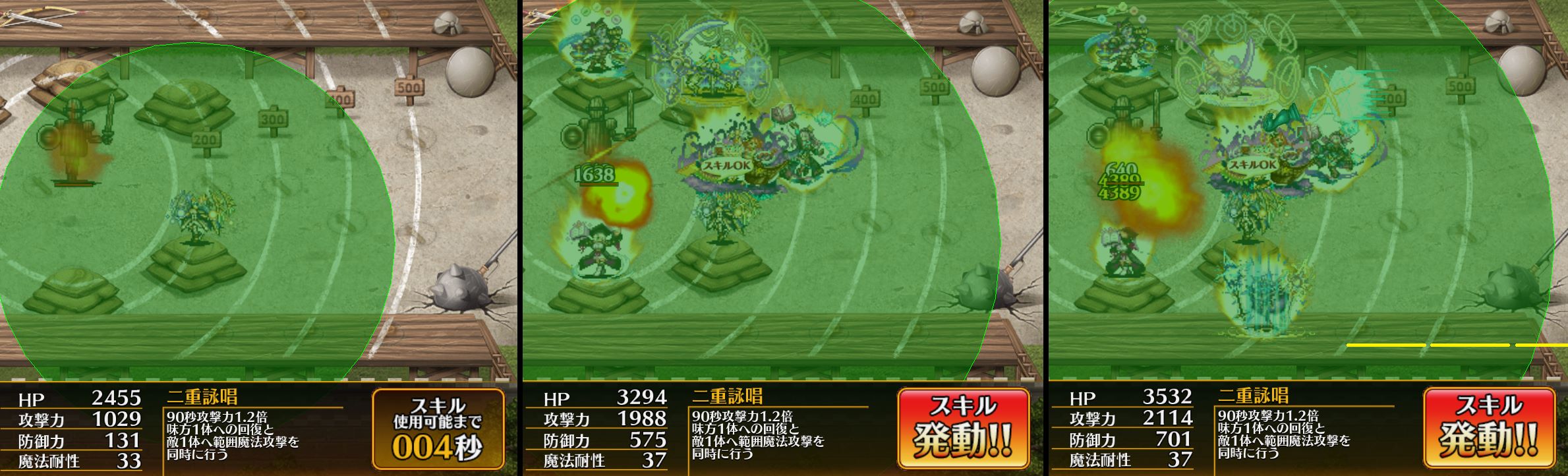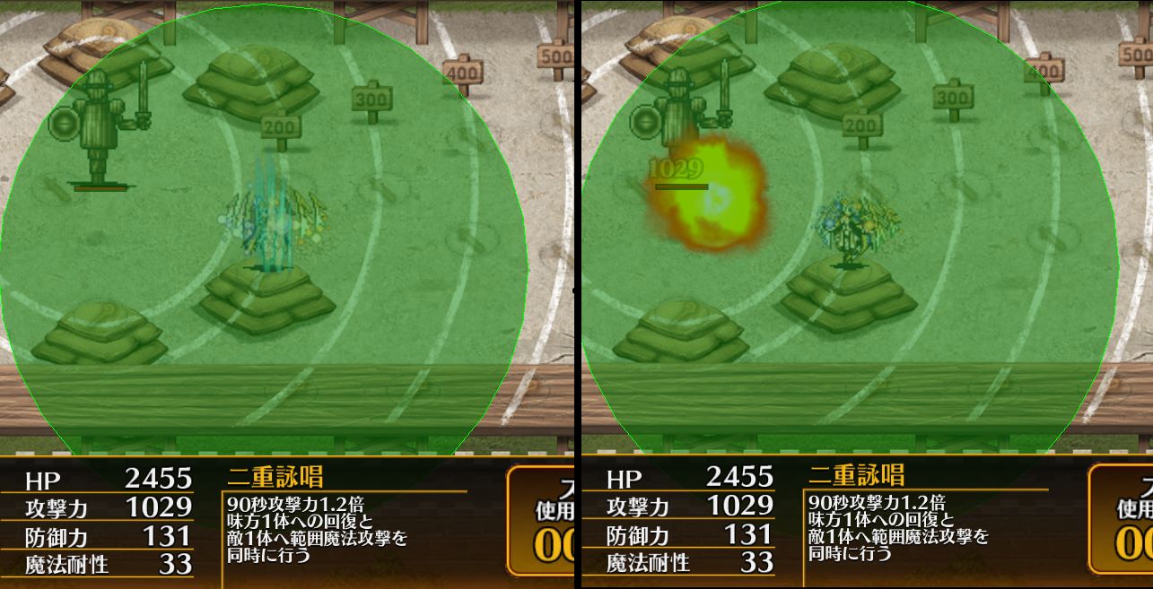 全味方を対象とするバフと範囲内の味方を対象とするバフをそれぞれ用意した。