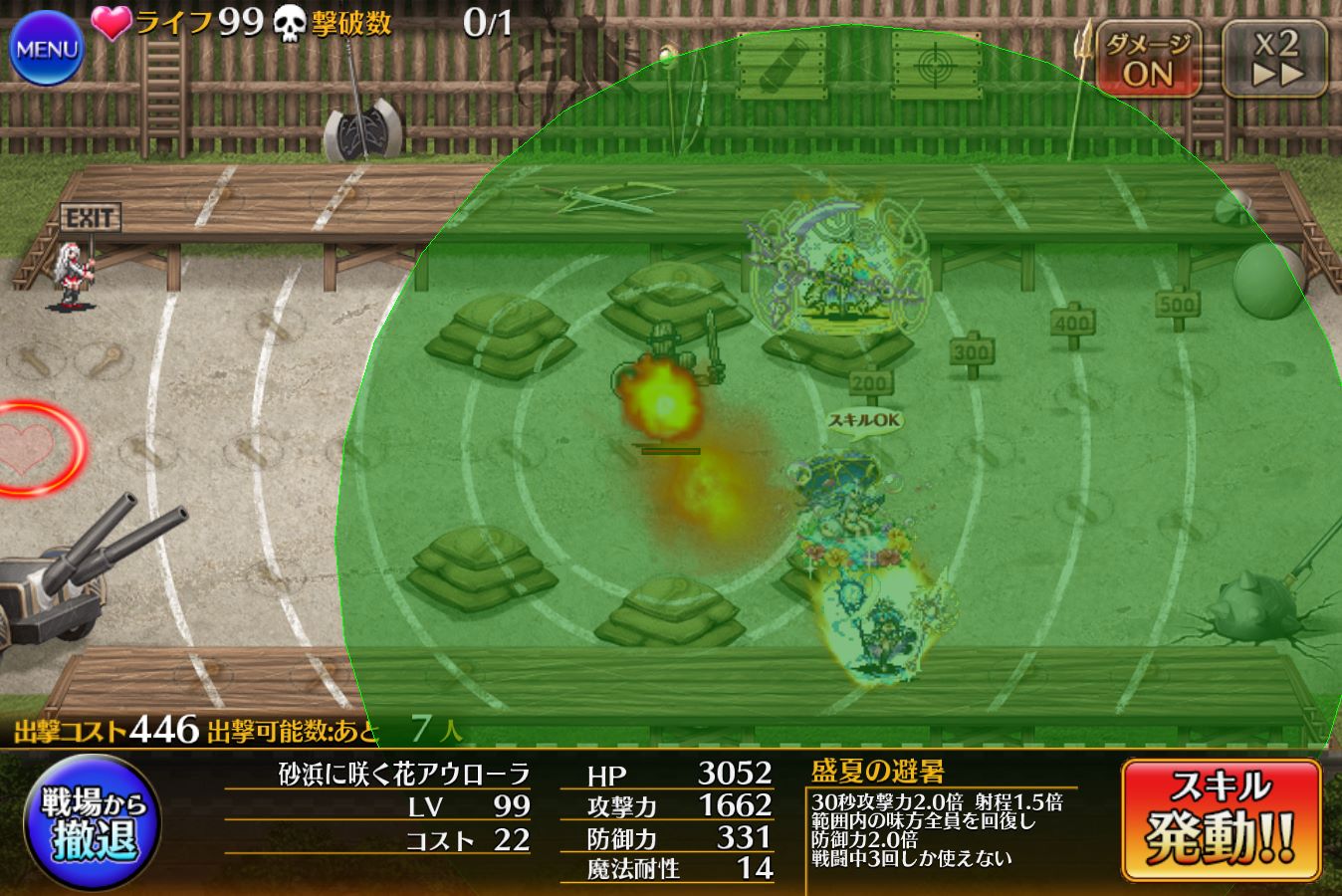 砂浜に咲く花アウローラ射程1.5倍乗算された
