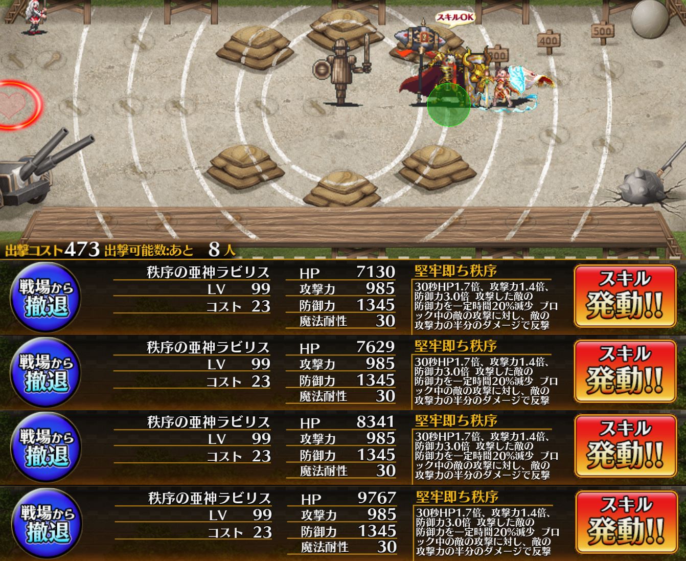 白ソラスと黒ソラスを所持しているが、黒ソラスのバフのみ適用されて基礎射程+10(同一スキル、もしくは同一ユニットのバフは競合する)