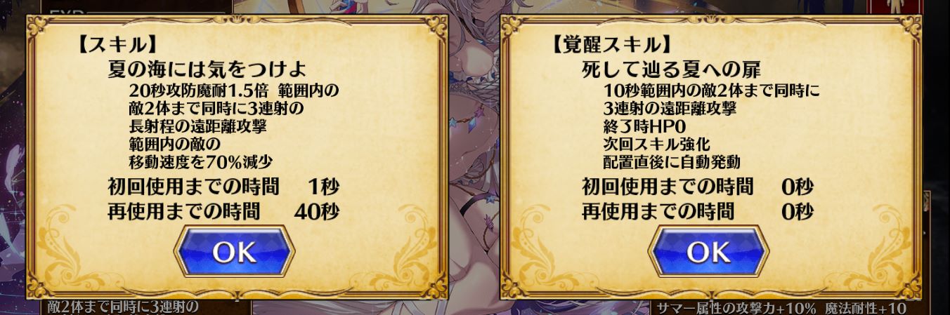 サマー属性を対象とした編成バフも「攻撃力+10%、魔法耐性+10」と強力!