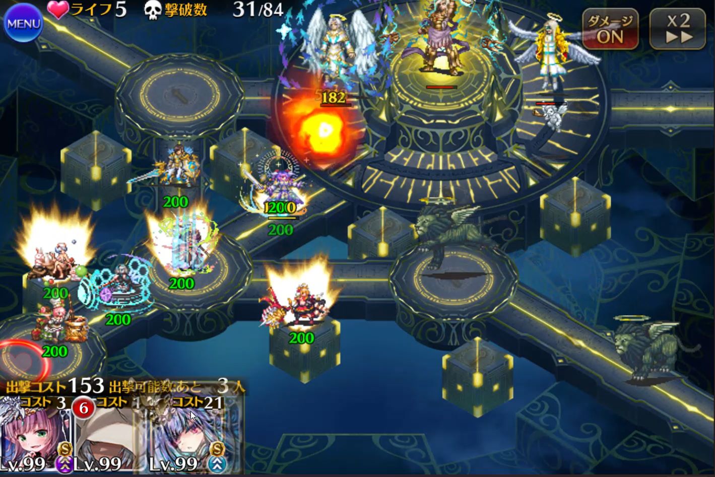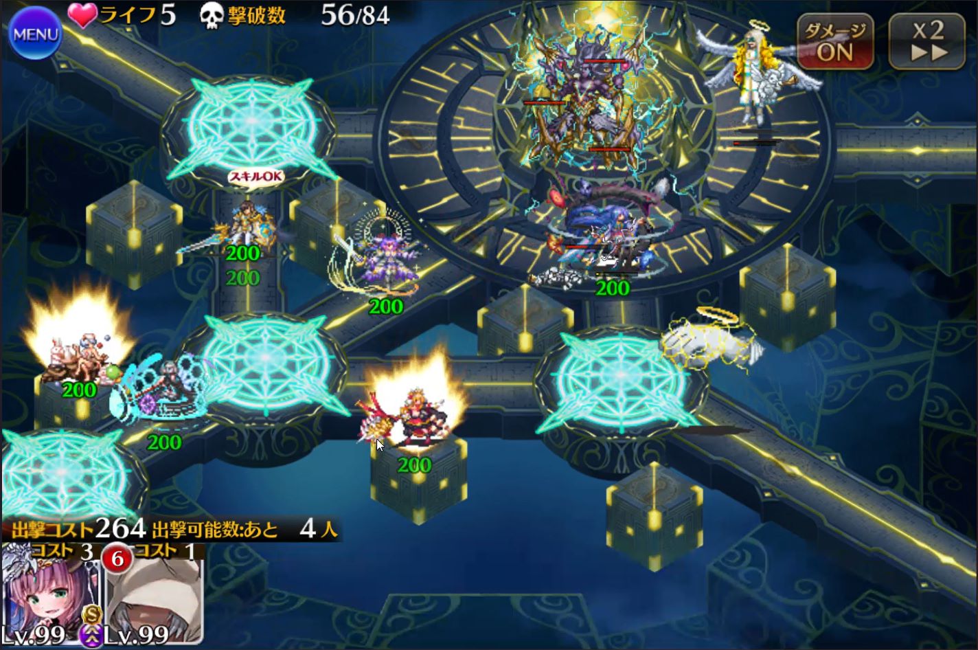 幸いなことに、ディアスの火力はさほど脅威ではなく、回復が2人もいれば余裕で耐えられる程度です。ただ、ディアスは射程の長いマルチ攻撃なので、味方を前のめりに配置していると回復がタイヘン。