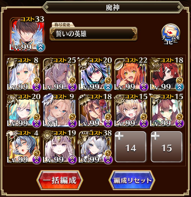 範囲火力が欲しくなるステージだったので、メインアタッカーにイーファを起用してバフを盛る構成にしました。盤面をコントロールする役として聞忠、湯ズリーの配置場所を確保するためにイヴリールを起用しています。