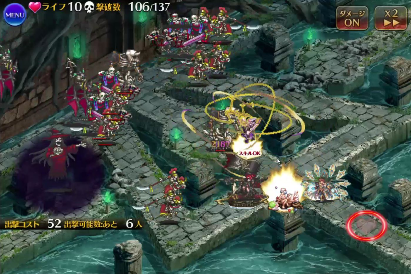 しかしながら、1wave目は上からしか敵が登場せず、2wave目は下からしか敵が登場しないので、”そっちにユニット配置しないだろ”ってとこばっかり攻撃するお茶目なエキーオーンなのであった。
