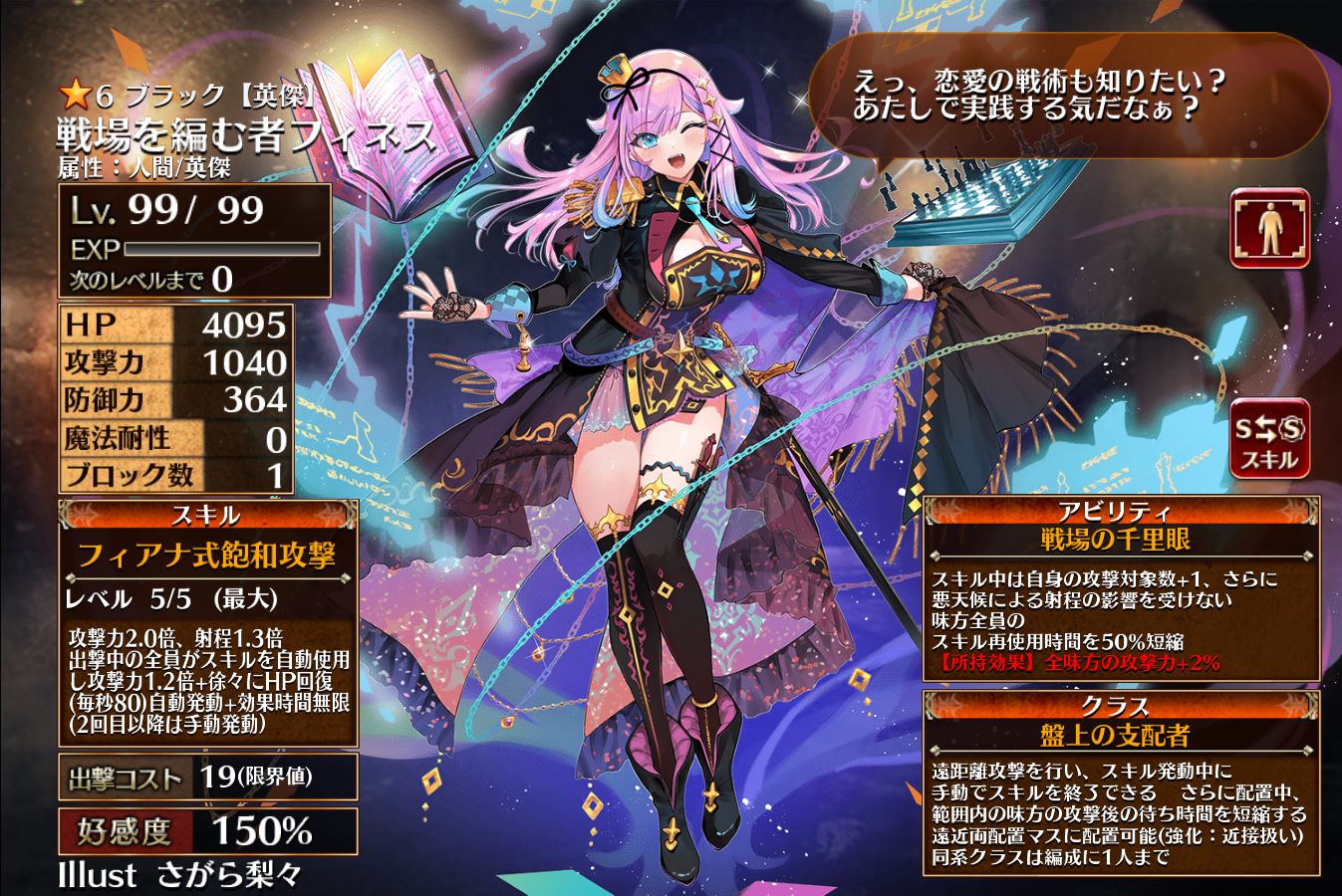 全体永続バフ、スキルCTカット、加速持ちの有能プラチナ英傑フィネスを見ていきます!