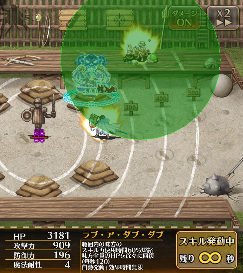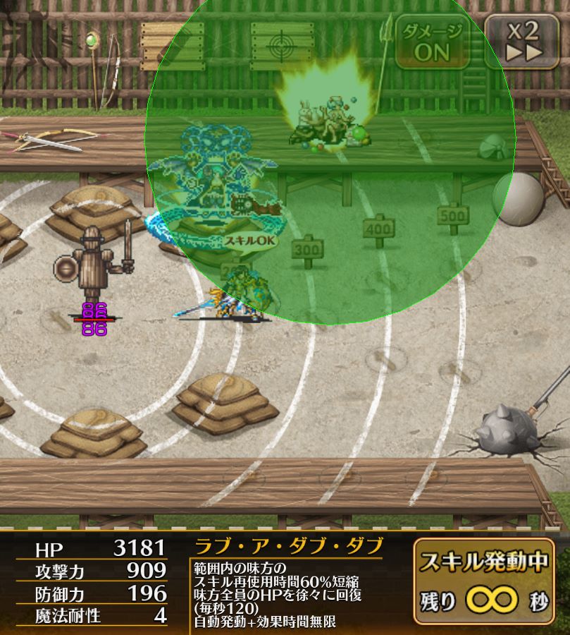 範囲バフが実は特殊枠のバフだったりしないか?って思いましたが、額面通り範囲バフでした。↓