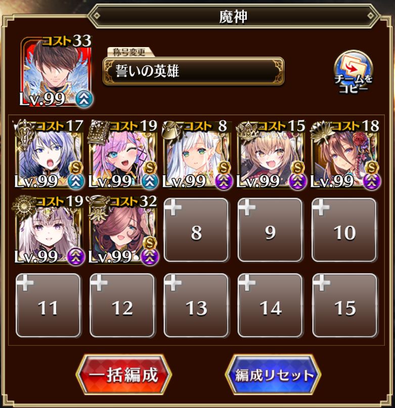 古い魔神なだけあって難易度は高くありませんが、ウェパルが持つデバフ効果によって味方ユニットが受けるダメージが2倍になります。ウェパル本体の火力も10000程度とそこそこ高く、耐久力のあるユニットがあっさり落とされることも。
