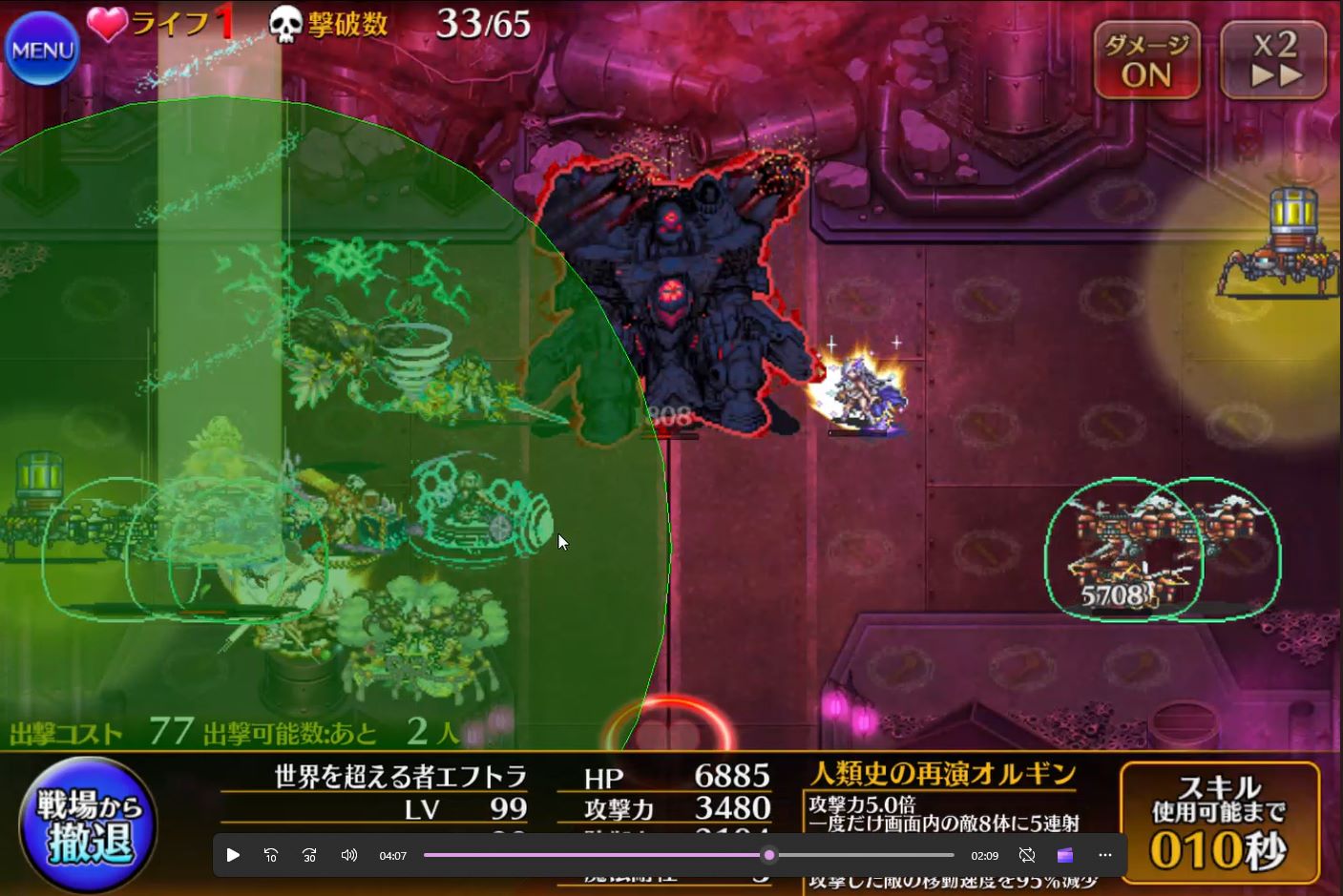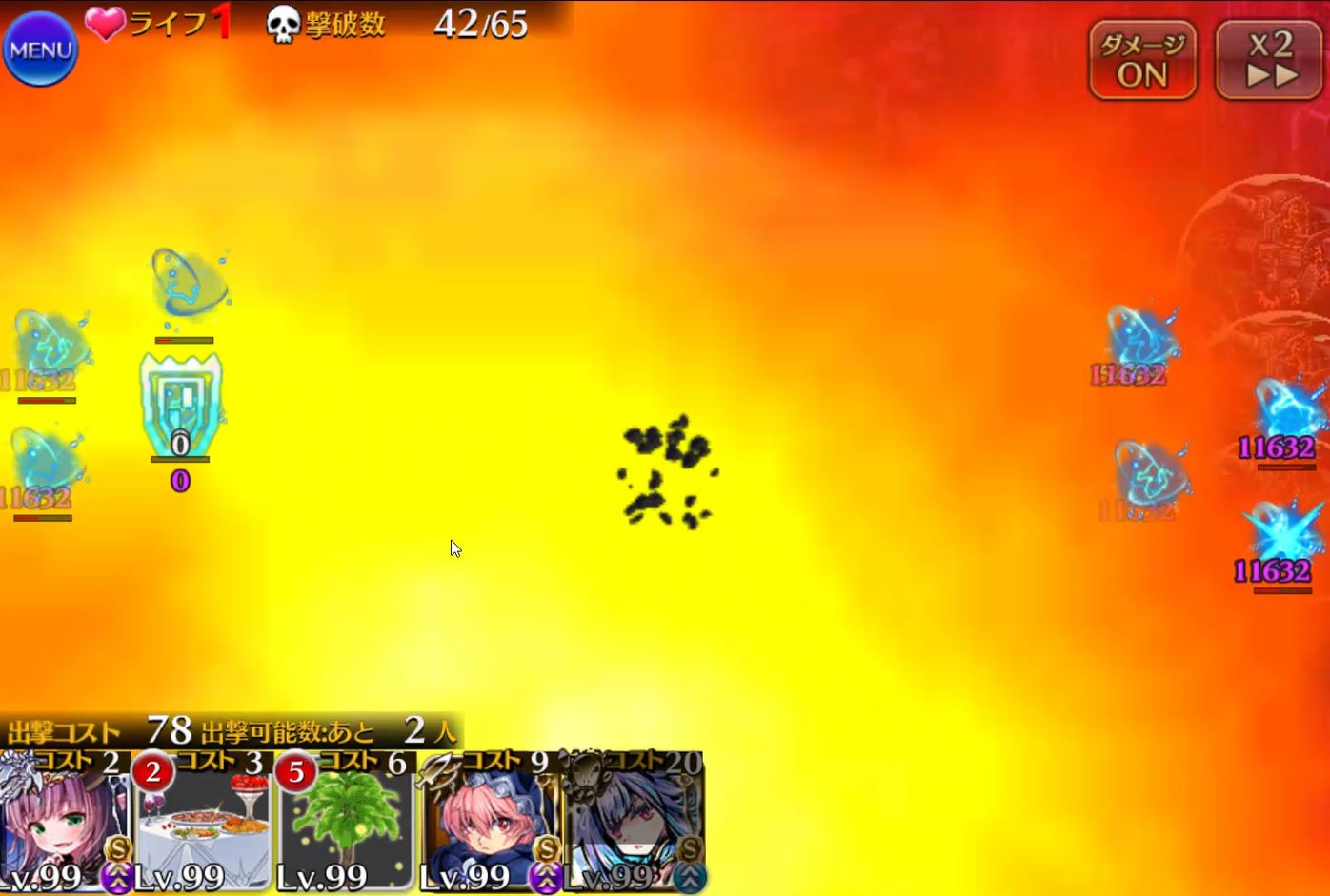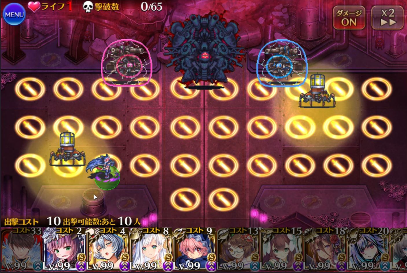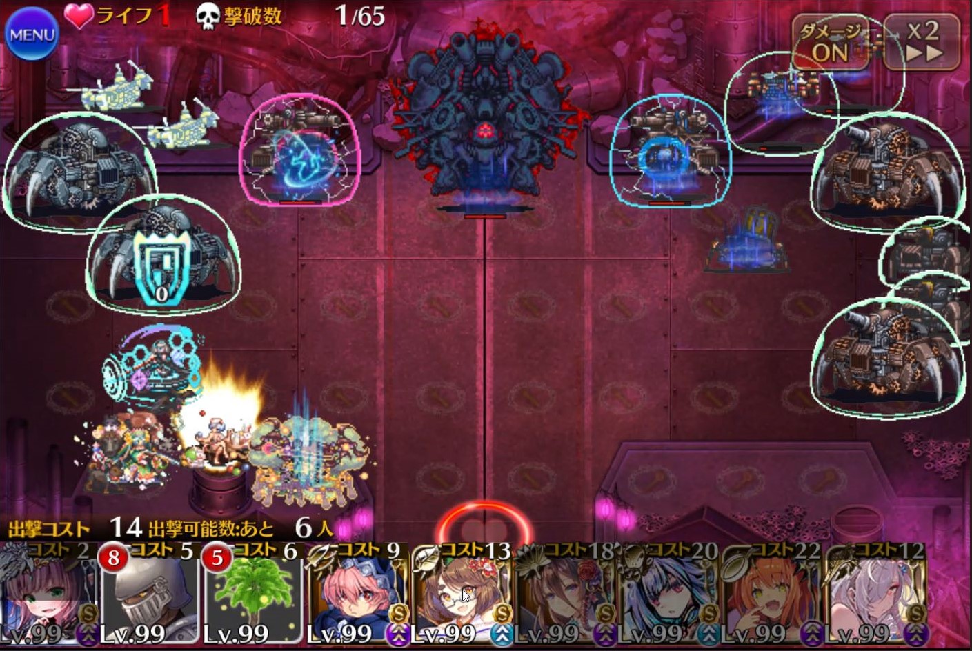 登場するほぼ全ての敵が一定ダメージ以下を無効化するバリアを展開しています。手数でダメージを稼ぐユニットよりも瞬間火力が高いユニットが有効です。