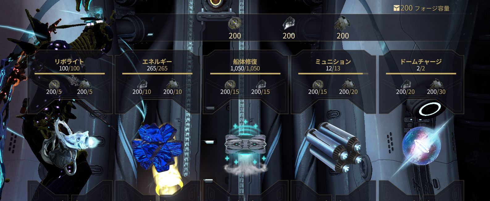 船体の損傷を修復していると資材が足りなくなる時があります。その時は船内の後方に設置されている4つの端末から補充可能です。