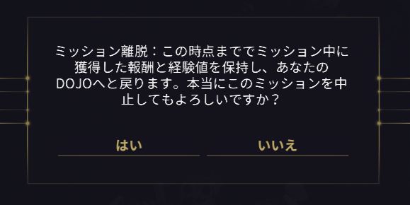 「この時点まででミッション中に獲得した報酬と経験値を保持し、」って書かれていますね。ここからおうちに帰ろう!