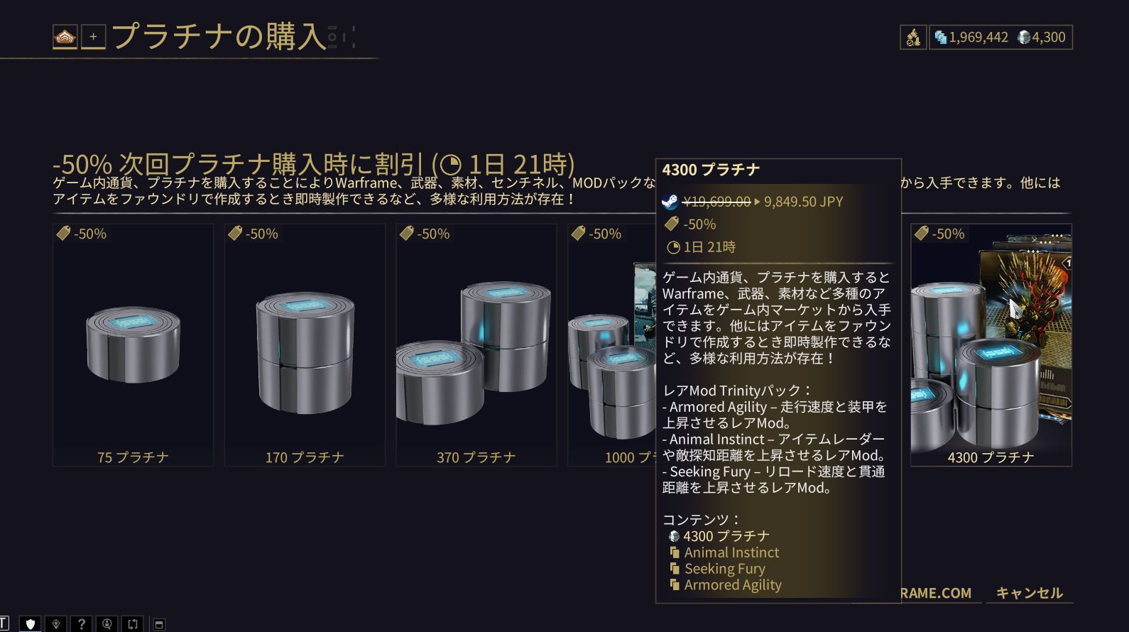 【Warframe】4300プラチナで何年遊べる?