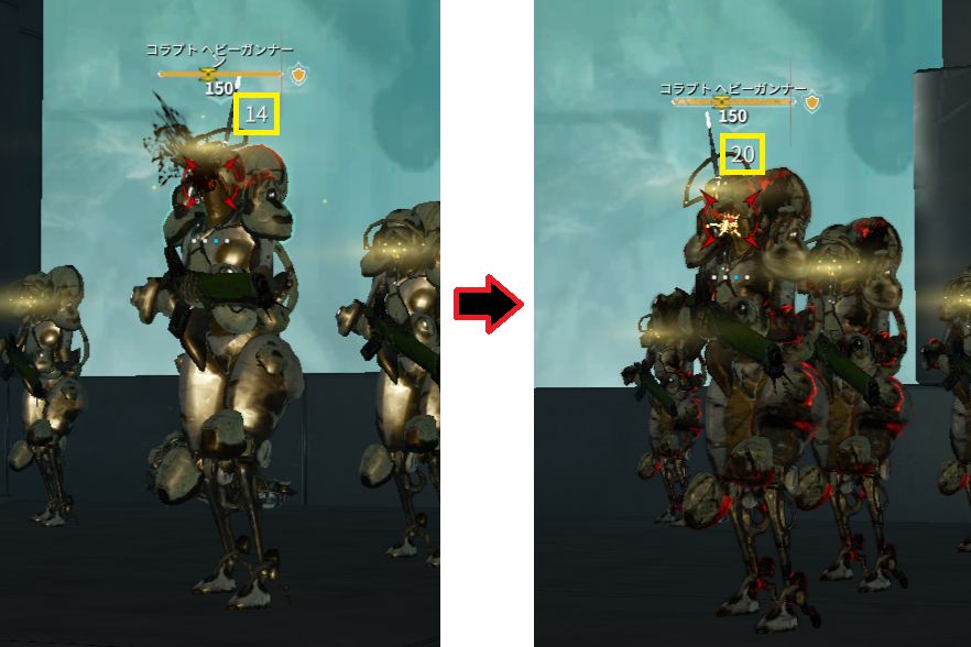 ダメージ脆弱性が付与された敵は赤いモヤモヤに包まれます。